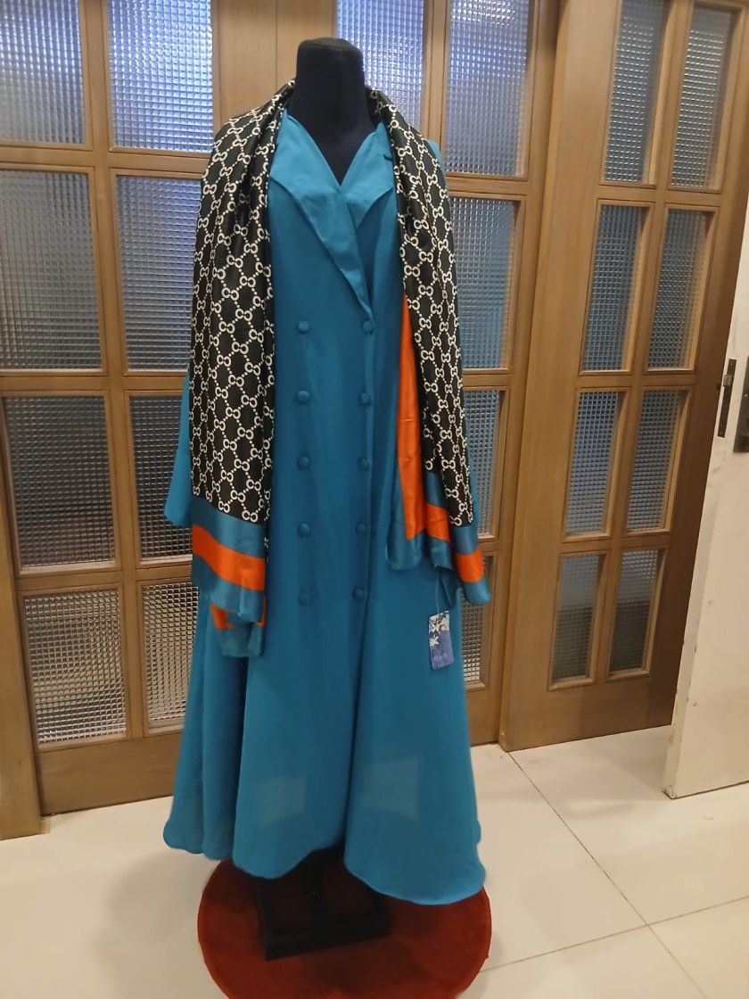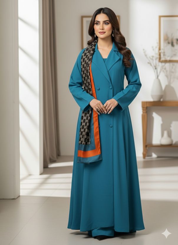 The Modern Pret Outfit is offered in Small, Medium, Large, and X-Large, with custom color and size options available. You can also purchase the silk stole separately, making it easy to style your way.