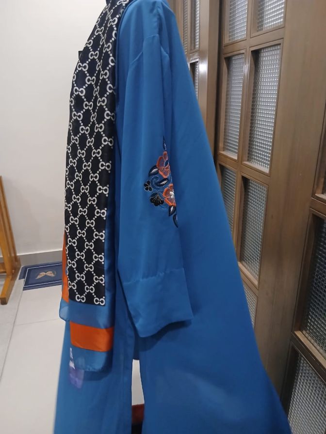 Detailing: Elegant embroidery on sleeves matching stole color